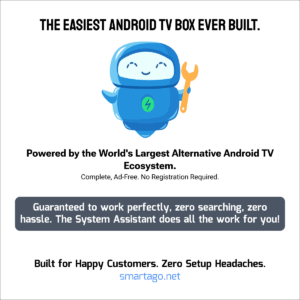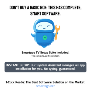 This device is powered by the Smartago Alternative Ecosystem, making it superior to basic TV boxes. While it operates outside the official Google Play Store, it is fully compatible with all standard Android TV capabilities and services.
